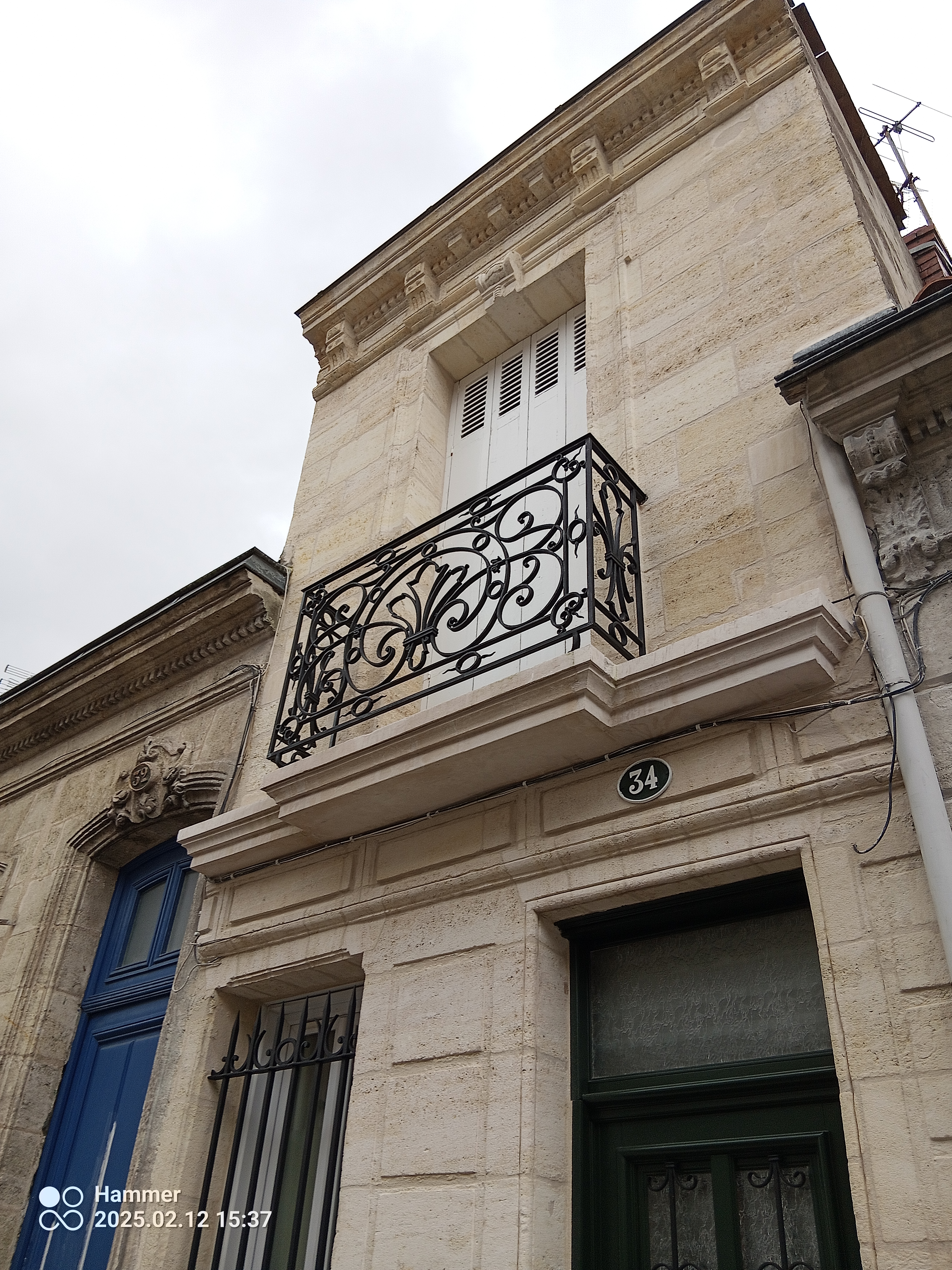 Ravalement de façade, retaille d’un balcon, fabrication et pose d’un garde-corps en ferronnerie sur Bordeaux.