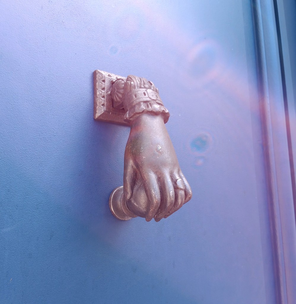 Restauration d’une poignée de porte en fonte et d’un heurtoir.