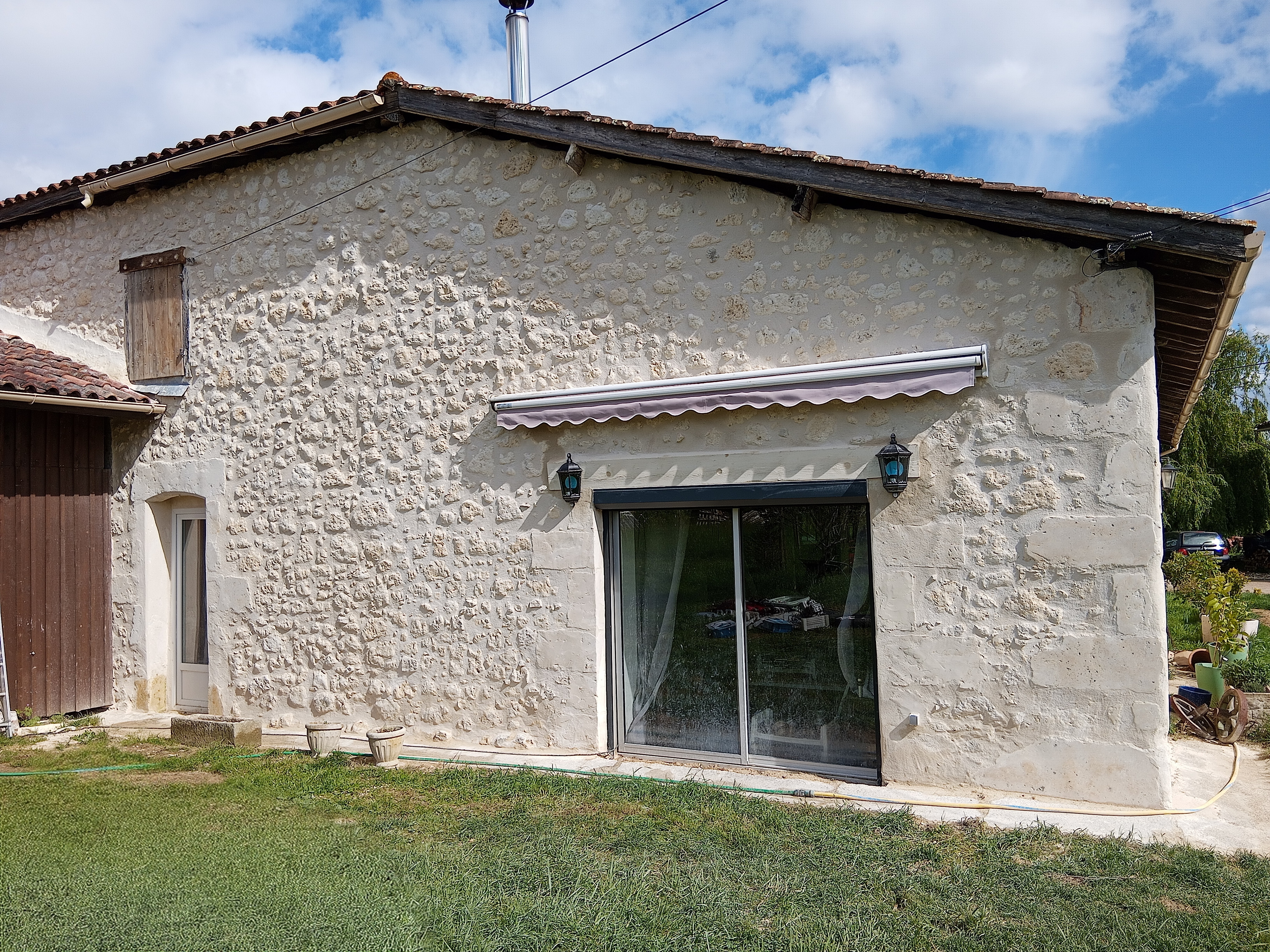 Plaquage en pierre d’un garage en centre-ville de Bordeaux, plaquage en pierre de Frontenac.